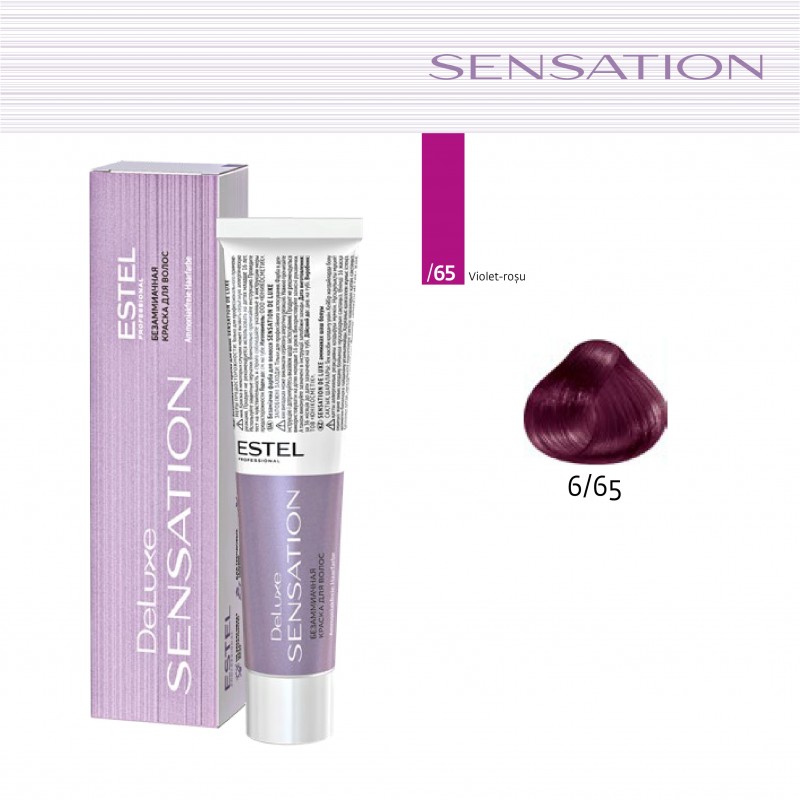 Vopsea fara amoniac pentru par DE LUXE SENSATION, 6/65 Castaniu inchis violet-rosu, 60 ml