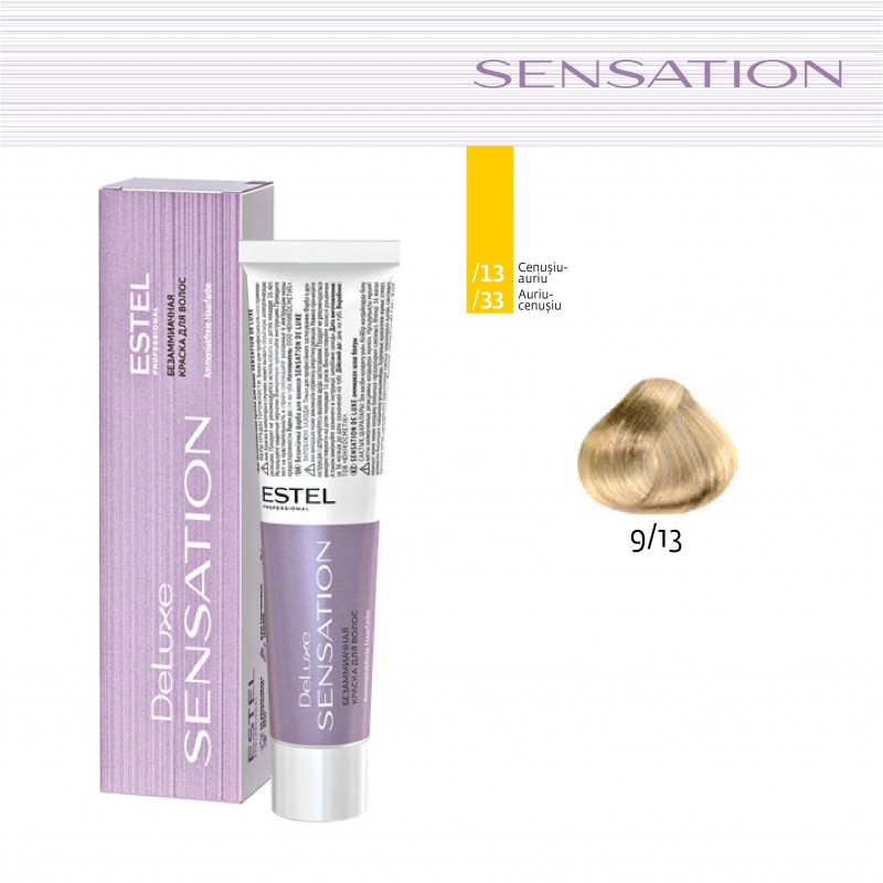 Vopsea fara amoniac pentru par DE LUXE SENSATION, 9/13 Blond gri-auriu, 60 ml