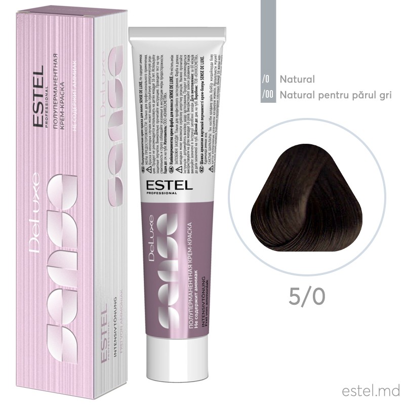 Vopsea-cremă semipermanentă pentru păr DE LUXE SENSE, 5/0 Şaten deschis, 60 ml