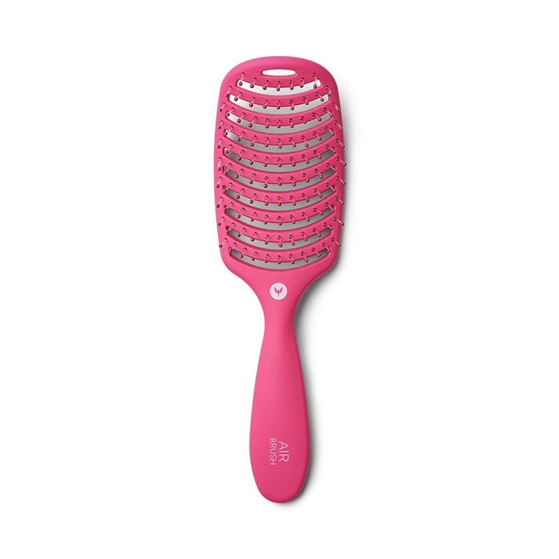 Щетка имеет форму, которая помогает приподнимать большие участки волос, пропуская воздух, благодаря чему волосы меньше повреждаются под воздействием тепла термостайлеров.